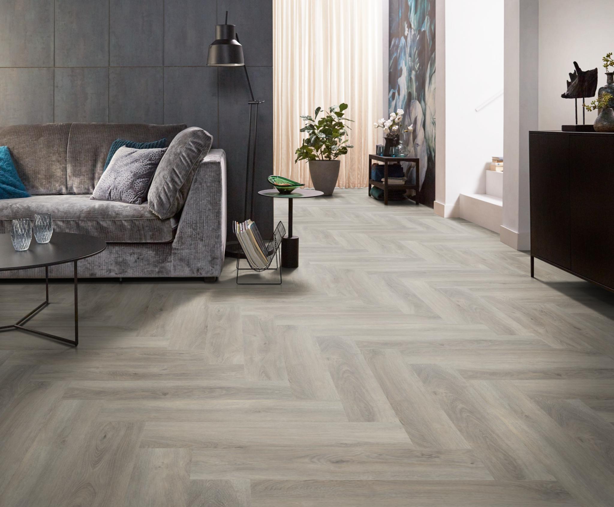 De moderne uitstraling van visgraat-pvc in karakteristieke uitvoering. Deze vloer is nauwelijks van echt hout te onderscheiden, door de kleine noesten. Deze vloer is 7 mm dik en heeft een toplaag van 0.55mm. deze vloer is ook geschikt voor appartementen vanwege 10dB deltaL in geluidsreductie.