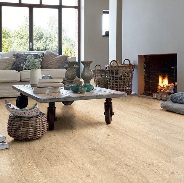 Gezandstraalde eik natuur LHD IMU1853 laminaatvloer maakt deel uit van de Quickstep Impressive Ultra serie en straalt een natuurlijke sfeer uit en laminaat met Echte groef.